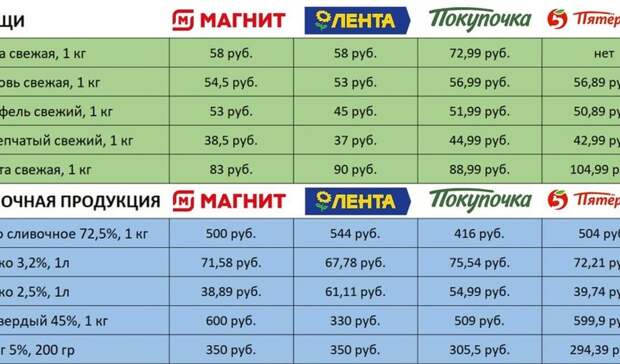 На фоне овощей молочные продукты выделяются в лучшую сторону. Так, молоко в твёрдой упаковке жирностью 3,2% за две недели между двумя мониторингами подорожало только в «Ленте». Но если в прошлый раз оно было намного дешевле, чем в других магазинах, то сейчас цена в 68 руб/л выигрывает совсем чуть-чуть. А что касается молока в пакетах и жирностью 2,5%, в «Ленте» оно, наоборот, вышло самым дорогим, тогда как оптимальная цена обнаружилась в «Магните» и «Пятёрочке» (38-39 руб/л).